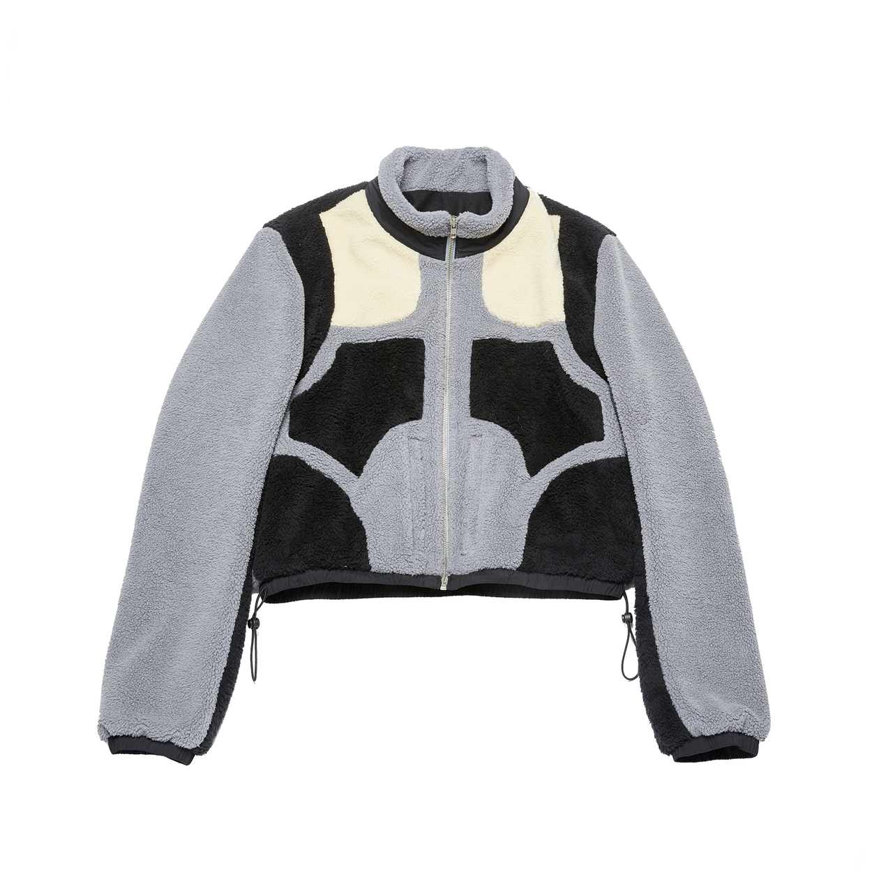 Faux Shearling Collar Calfskin Biker Jacket_Burgundy