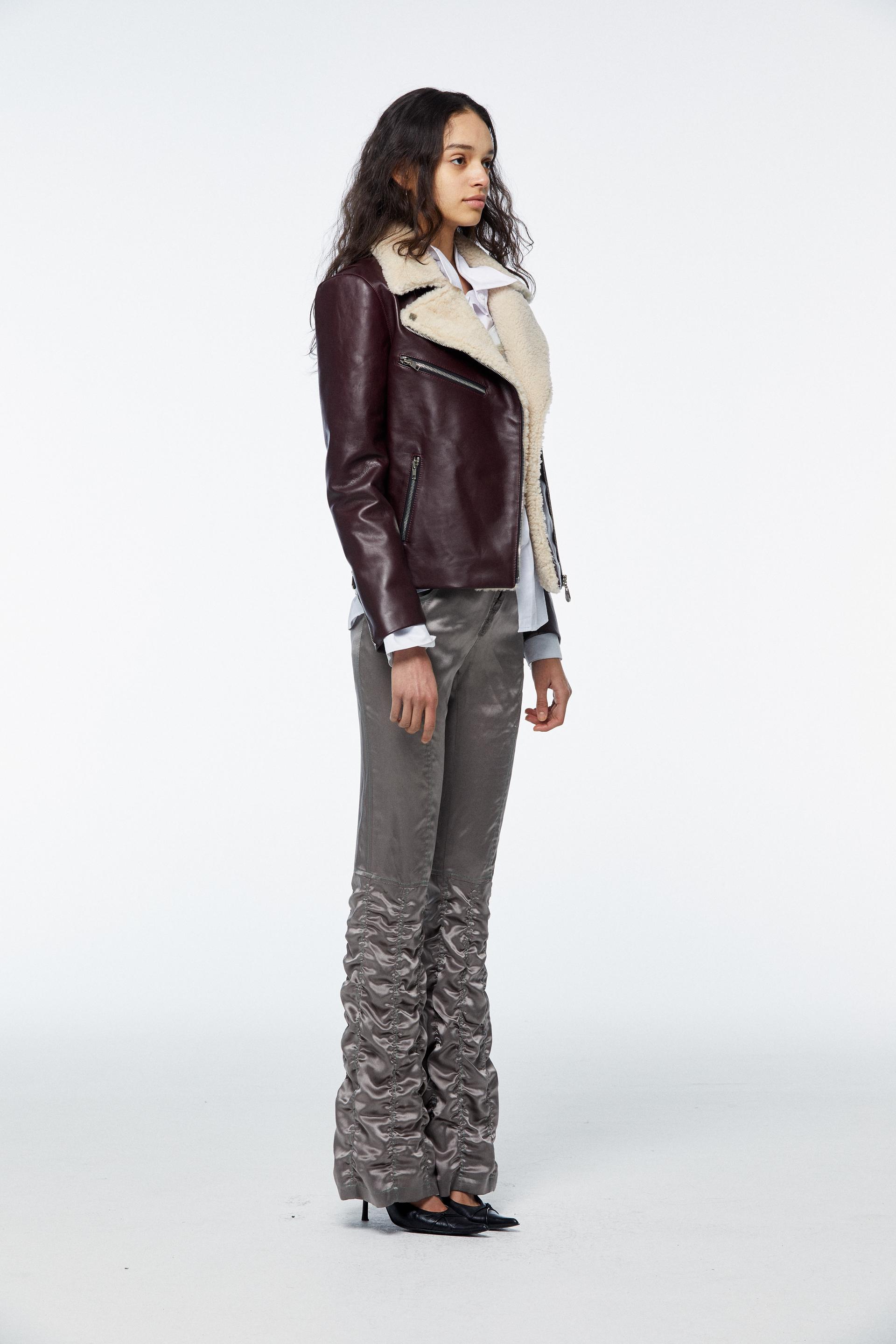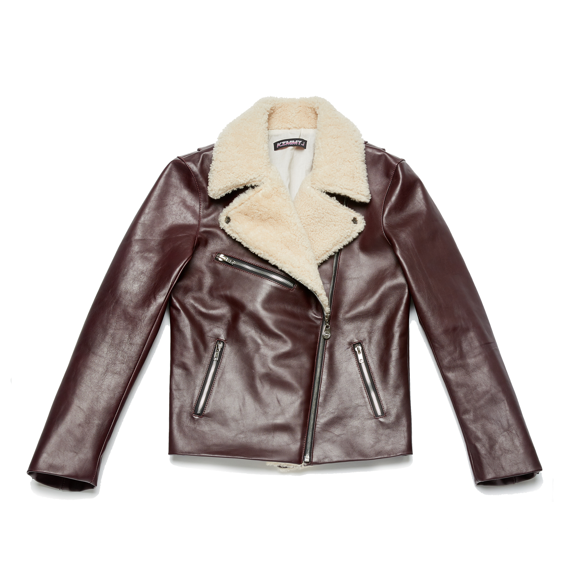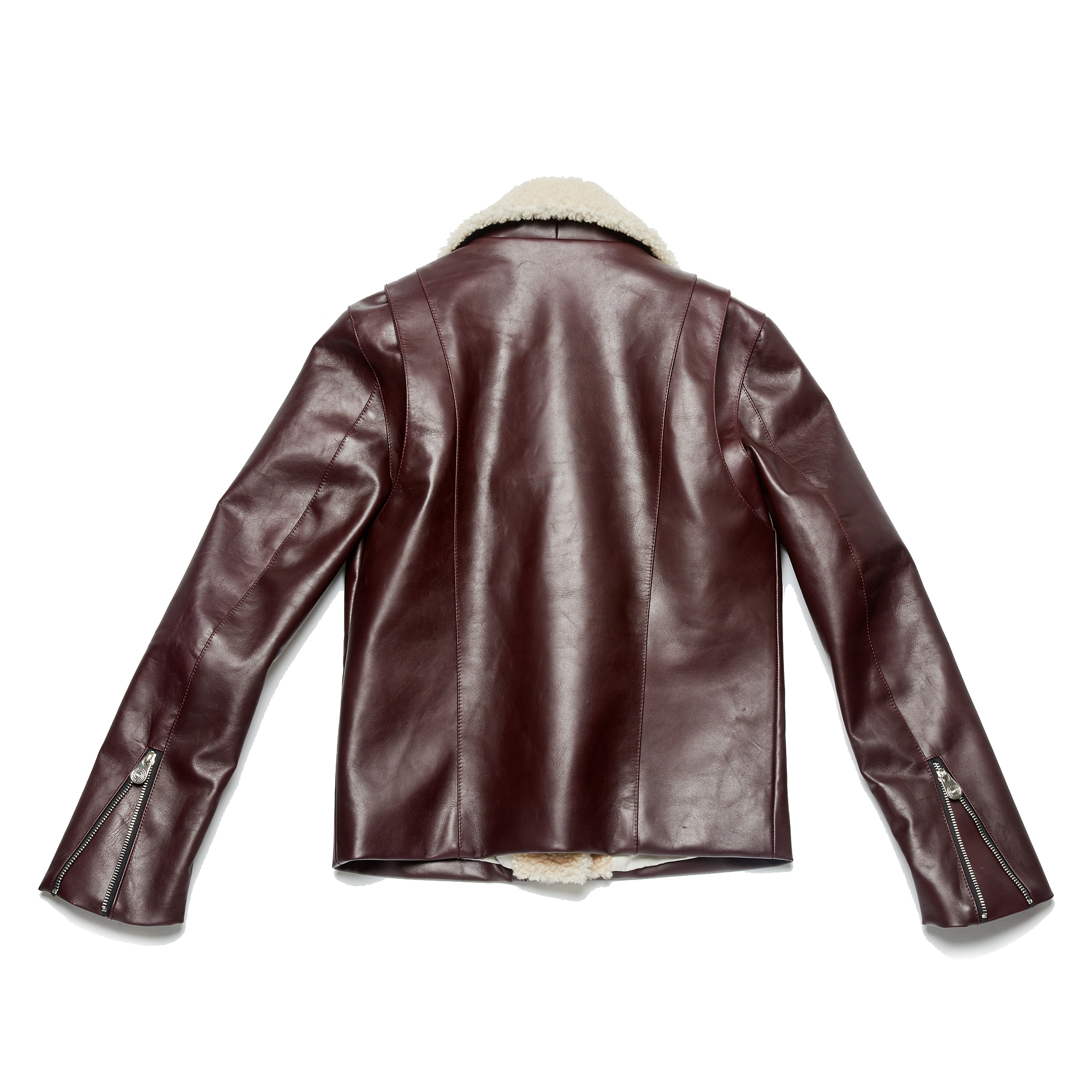 Faux Shearling Collar Calfskin Biker Jacket_Burgundy